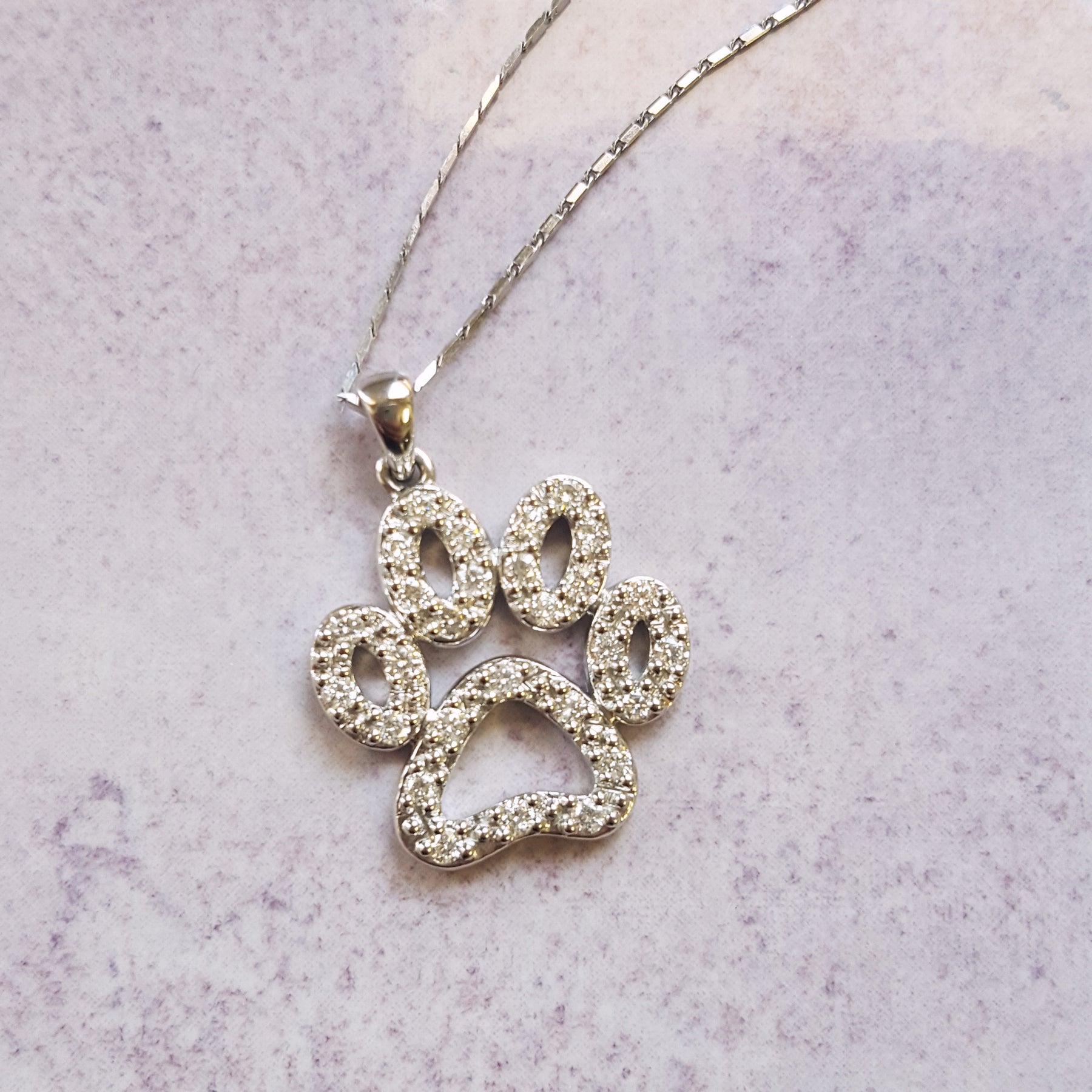 Show your love for pets with these adorable 14K White Gold Diamond Dog Paw Earrings. Featuring 56 round diamonds totaling 0.20 carats, each earring sparkles with a paw print design that’s both playful and elegant. Set in polished white gold with secure push-back posts, they’re perfect for everyday wear or as a heartfelt gift for any animal lover. It is a charming tribute to the furry friends who leave paw prints on our hearts.
