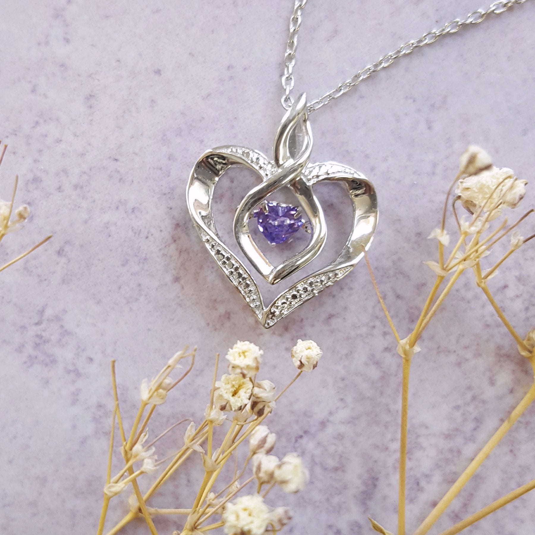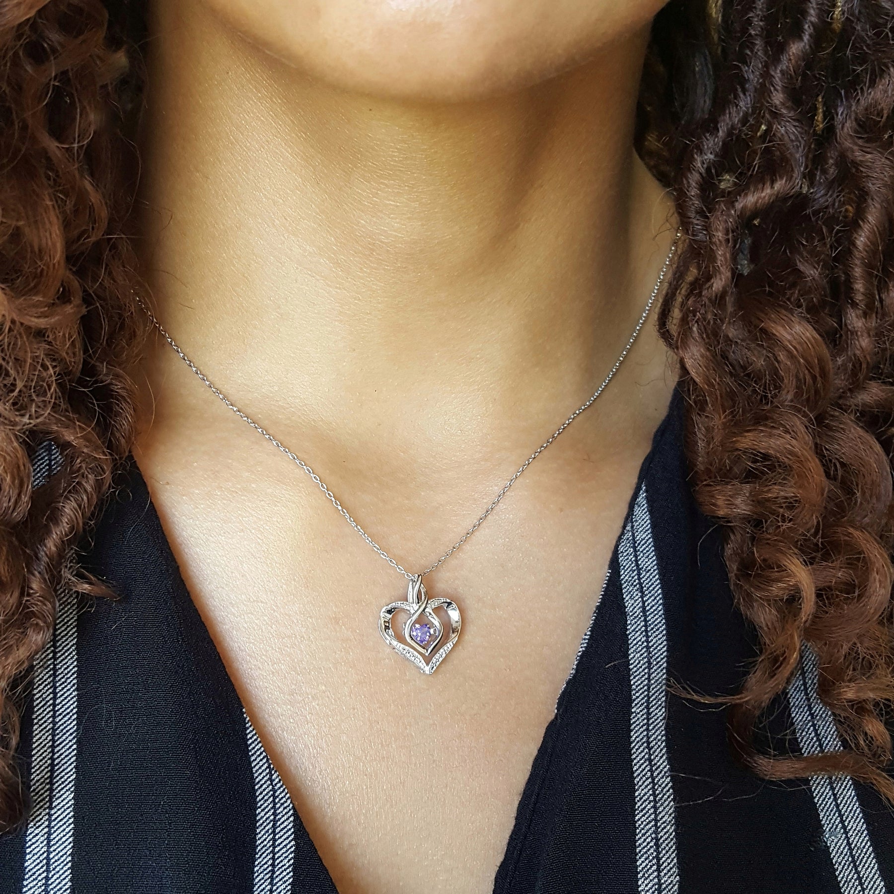 This sterling silver heart pendant features a 1/4ct created alexandrite, June’s gemstone, symbolizing the rhythm of love with timeless elegance.